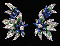 Large Moser green glass chalice is decorated with brightly colored enameled flowers and gold enameled scrolls. Flowers and scroll work encircle the cup and foot while the stem is decorated with delicate cream colored enamel stems and leaves. Stem is further decorated with four applied floral prunts. Chalice is pictured in the book Moser Glass: The Klabin Collection by Gary D. Baldwin, pg. 128, plate 166. SIZE: 12-1/4″ t. PROVENANCE: George Klabin Collection. CONDITION: Very good to excellent. 5-67338 (3,000-5,000) – Lot 1014