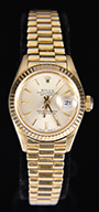 Tiffany Studios ashtray has gold dore patina and is complete with a matchbox holder and snuffer. The ashtray is complete with gold dore insert. Stamped on the underside “Tiffany Studios New York 2068”. SIZE: 8-3/4″ w x 5″ tall to top of matchbox holder. CONDITION: Very good to excellent with some minor dents to insert. Insert wobbles slightly when in place. 5-67894 (1,500-2,500) – Lot 2737