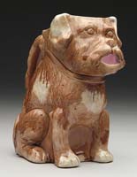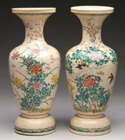 INTERESTING HAND PAINTED EWER. The Amphora-type footed ewer has dolphin handle and mask spout. The body with a cream background decorated by red poppies. SIZE: 14”h. CONDITION: Generally very good, some rubbing to gold base and rim. 9-73470 (150-250)