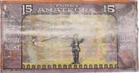 SIGNED (First Half of the 20th Century) PRIMITIVE SUNLIT LANDSCAPE. Unframed oil on canvas late afternoon scene shows a figure in a rowboat on a lake inlet with house, dock and rowboat. Signed indistinctly lower left with what might be “E. Cawood 1928”. SIZE: 12” x 24”. CONDITION: Patch to reverse with a small puncture at stretcher line. Surface dirt, fair to good. 9-73495 (200-300)