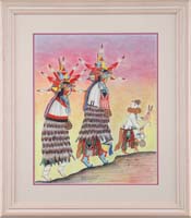 ERTE (ROMAIN DE TIRTOFF) (Russian, 1892-1990) “4 CHINESE GIRLS “TAPESTRY””. Unsigned gouache costume design showing the Chinese influence in a dragon decorated blue and yellow costume with headdress. Pencil inscribed “Presentation 4 Chinese Girls Tapestry Different Colors”. A letter from Jim Konoske Consulting indicating the piece comes from the Estate of Charles Lemaire. Erte and Lemaire were associates who worked together. This is one of the eleven designs by Erte which were given to Mrs. Teree Peck of Palm Springs. There is a stamp to the left of the head from Weldy Paris, 18 Rue Saulnier. Housed in a modern black frame with wide linen matte and inner gold liner. SIGHT SIZE: 12” x 9-1/2”. CONDITION: Very good. 9-73555 (3,500-4,500)