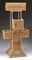 FINE MAHOGANY TWO TIER LAMP STAND. Two graduated dish top levels with turned post having leaf carved urn all supported by carved legs ending in pad feet. The top having two light sockets and a pleated shade. SIZE: 62”h x 23-1/2” at widest. CONDITION: Very good, light chips to dish edge.. 9-74079 (400-800)