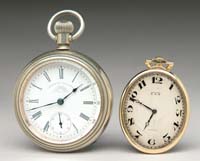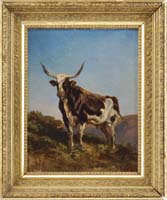 WILLIAM LANGLEY (British, 1852-1922) TWO WORKS: YOUNG MAIDENS IN LANDSCAPE. Both identically housed in period gesso decorated frames with gilt liners. Both oil on canvas scenes depicting the same girl in different settings. In one painting she is seen with lute over shoulder and standing holding onto a wood fence with water, flowers and tree background. The other showing her leaning against a building with a shepherd’s crook with flower beside her and building with blue and pink sky. Both are signed “William Langley”. One frame having original label from “George Knight”. SIZE: 24” x 12”. CONDITION: One has been relined. Both have some inpainting. Frames have minor gesso loss. Good. 9-73883 (1,000-1,500)