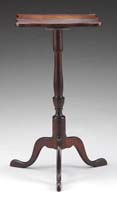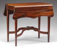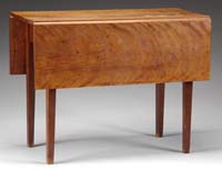 KITTINGER COLONIAL WILLIAMSBURG QUEEN ANNE STYLE DINING TABLE. Deep drop leaves having molded edge. Straight skirt raised on four cabriole legs with carved knees ending in padded Queen Anne feet. Paper Kittinger label indicated pattern “No CN117”. SIZE: 29-1/2” h x 58-1/2” d x 25” (closed); 73” (open). CONDITION: Some finish loss to top, otherwise very good. 9-73630 (2,000-3,000)
