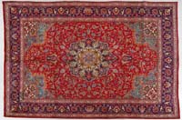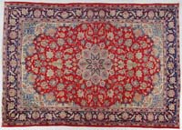 PERSIAN KASHAN ORIENTAL RUG. Red field with center medallion and flower design. Colors of blue, ivory and red. SIZE: 11’1” x 7’11”. CONDITION: Very good. 9-73267 (1,000-1,400)