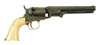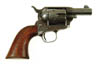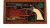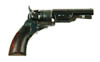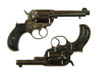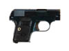 COLT NEW HOUSE SPUR TRIGGER REVOLVER. Cal. 41 CF. SN 25390. Blued finish with 2-3/16” tapered rnd bbl, half moon front sight, 5-shot cylinder with square butt checkered Colt hard rubber grips. The right side of the frame has a loading gate. Limited production revolver, about 4,000 made in the period 1880-1886. CONDITION: Extremely fine, about new, may be unfired. Retains 95-97% glossy original blue. Cylinder retains about 85% blue with some thin spots that appear to be rubs from sliding around in a drawer. Hammer retains most of its bright niter blue on the back edge and the trigger about 50% dull blue. Grips are crisp, the mechanics are fine, bright shiny bore. 4-53098 JR581 (750-1,250)