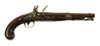 UNUSUAL & RARE PURDEY PERCUSSION RIFLE/SHOTGUN 2 BBL SET. Cal. About 14 bore shotgun and 65 caliber rifled bbls. SN 2133. The shotgun bbls are 29-1/2” long with smooth flat rib bearing the maker’s name and a single brass bead. The rifle bbls are 27-3/4” long with a long low front sight and 3-leaf folding gold line express sight and also bears the maker’s name & address. It has delicate front action lockplates with dolphin hammers & stalking safeties with platinum blow-out plugs on both sets of bbls. The lockplates are each lightly engraved with a reclining stag and light arabesque patterns. It has a large iron trigger guard with checkered grip and an engraved tiger on the bow with a short pineapple finial. The top tang is beautifully engraved with full coverage patterns and a cat’s face. It is mounted in a 1-pc nicely figured walnut stock with sling stud & smooth steel buttplate. Each of the bbls has two ramrod guides and are secured in the stock with a single wedge. Accompanied by a letter dated 31 October 2003 stating that a Mr. Desmond Lundy of British Columbia, Canada purchased this set directly from Purdey’s in the early 1960’s. Also accompanies is a letter from Purdey’s to Mr. Lundy stating that this gun was built in 1831. CONDITION: Very fine. Both sets of bbls and the wood retain most of a fine professionally restored finish, probably from Purdey’s. Forestock has a grain check near the wedge. Checkering has been freshened and does not match. Bbls retain most of this beautiful restored silver & brown Damascus pattern. Rifle bores are strong with bright rifling, dark in the grooves. Shotgun bores have been cleaned and have scattered light pitting. 4-51403 (9,000- 12,000)