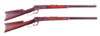 *RARE REMINGTON MODEL 12F PUMP RIFLE. Cal. 22. SN 58734. Beautiful early little rifle with 24” oct bbl, standard sights with straight grain wood, ribbed bullet shaped forearm and semi-pistol grip stock with crescent buttplate. The receiver is beautifully engraved with vignettes of two running rabbits on the left side and a squirrel on the right side surrounded by arabesque pattern engraving, which extends over the top and bottom of the receiver. The serial number on the bottom of the receiver is engraved. CONDITION: Fine. Bbl retains a plum/brown patina overall with slight muzzle and sharp edge wear. Magazine tube is mostly a plum/blue patina with light wear in the slide areas. Receiver retains most of its original factory blue, turned slightly dull. Wood is sound with several small nicks, scratches and dings and a bruise on the wrist and retains about 90% original varnish. Mechanics are fine, bright shiny bore. 4-52484 JR267 (3,000-5,000)