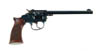 *COLT MODEL 1903 DA REVOLVER. Cal. 38 Colt. SN 259975. Blued finish with 6” bbl, half moon front sight with fixed groove sight in the frame. It has checkered Colt logo grips. Made in 1906. CONDITION: Extremely fine. Retains 95-96% glossy bright original blue with light muzzle and sharp edge wear and a small thin area on the left side of the muzzle. Back strap is slightly thinned. Trigger & hammer retain most of their glossy niter blue. Grips and mechanics are crisp, bright shiny bore. 4-53100 JR579 (500-1,000)