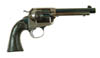 *COLT MODEL 1909 MILITARY REVOLVER. Cal. 45 Colt. SN 36360. Usual configuration with 5-1/2” bbl, fixed sights, smooth walnut grips with a lanyard loop in the butt and inspector marks on the bottom of the grips and right side of the frame. Usual bbl markings. CONDITION: About good. Trigger and hammer retain generous amounts of their original niter blue, otherwise the metal retains most of an old cold blue finish. Grips are fine with a good hand polished patina. Mechanics are crisp, bright shiny bore. 4-53099 JR580 (500-800)