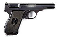 SN 26087. Cal. 8 MM Lebel. 22-1/4″ bbl. Six-pointed star arsenal marking and typical “SIDARME” and “C.S.R.G.” French designation markings and SN on left side of receiver. This weapon also has “SA” within a square on left side of receiver indicating that not only was this gun used in WW I by the French, but that after the war it was one of the guns sold to Finland, and taken into Finnish service. When the French modernized their military equipment many such arms were sold to Finland and other countries after WW I to the delight of French government. Includes one orig magazine which is also marked with “SA” within a square. SNs match between upper and lower assemblies. Bi-pod employs properly. Mechanism moves very smoothly when operated by hand. This weapon appears fully functional. This is a National Firearms Act item and requires BATF approval prior to transfer. CONDITION: Overall finish and appearance extremely fine with about 90% of a black paint finish remaining on upper assembly and bi-pod with lower retaining about the same percentage of orig blue finish. Magazine is almost devoid of its orig finish and has turned a pleasing gray patina. Cocking handle also a pleasing gray patina. All screw slots exhibit damage. Wood is actually fine and very solid and serviceable, about the best this cataloger has seen. Bolt is near excellent, shiny and bright. Although the Chauchat gets a great deal of bad press as a poor machine gun or one that does not operate well, this stems largely from the American experience of an inadequate redesign to fire 30-06 combined with the fact that there are a number of poor condition and also, let’s face it, poorly manufactured specimens extent. Americans were taught to keep their bodies in a direct line behind rifles when shooting them, and doing this with the Chauchat results in a very uncomfortable experience. The body at a 45 degree angle when firing is much better. Also, orig ammunition for these guns has been very susceptible to deterioration over the years. There are specimens of this model and caliber that when fired using properly loaded modern made ammunition run just great. We fired exactly 100 rounds out of this specimen at the range in September of this year and had no stoppages or problems whatsoever. Can’t ask for any better than that. 49651-6 JWK51 C&R (3,000-5,000) – Lot 3767