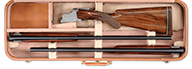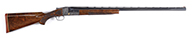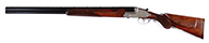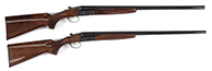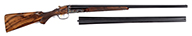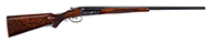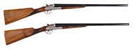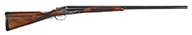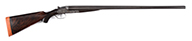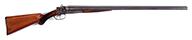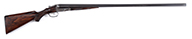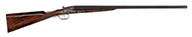 SN 448282. Cal. 20 ga. 2-3/4″ Chambers. 10″ Bbls with matted rib are marked “SMOKELESS POWDER STEEL” and “MADE IN U.S.A.” on tops. Bbl flats are stamped with SN. Small, case hardened, early NID action with pin type cocking indicators, is fitted with automatic safety and double triggers. Action is marked with Ithaca dog over “Auto & Burglar Gun” “Ithaca Gun Co Ithaca, N.Y.” on both sides. Action is also engraved with stars on sides, hinge pin ends, bottom, and trigger guard bow. Late style laminated stock is point pattern checkered at grip. Short splinter forend has Deeley type release. CONDITION: Very fine. Bbls retain over 80% orig blue, silvered at muzzles and breech ends, thinning overall. Action retains 40 – 50% orig color, considerably silvered on bottom. Screws show heavy use. Stocks retain most of their orig finish. Grip shows several heavy knocks, and has repaired crack. Bores are excellent. Action is tight. 49227-1 MGM440 (6,000-12,000) – Lot 3780