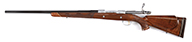SN 43010. Cal. .348 WCF. 24″ bbl, blue finish, checkered walnut stocks. PROVENANCE: William Henkel Collection. CONDITION: Very fine. Rifle retains 98% bbl blue, turning slightly plum with slight muzzle wear. Bore is very good. Ramp front sight. Receiver shows 98% blue. Lever and hammer show 98% matte blue. Wood is fine with miniscule handling marks present. Checkered pistol grip with steel cap. Checkered forend with blue steel cap. Blue steel buttplate with 90% blue. Winchester quick detach sling swivels. Very nice Model 71 Deluxe. 49394-35 TEP (2,000-3,000) – Lot 1027