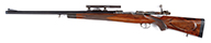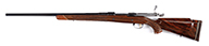 SN 28164. Cal. 38-55. 28″ bbl, blue and case colored finish, checkered pistol grip stocks with Farrow pattern light Swiss butt. Spirit level front sight, Vernier mid-range rear tang sight. CONDITION: Very fine. Bbl retains 90% blue with some thinning, very good bore. “Ballard” engraved on top flat, receiver shows 80% case colors with few apparent mars. Hammer, breechblock and lever show 80% case color, some browning on the lever. Stocks are very good with checkered pistol grip and forend with horn cap, stocks retain 90% orig finish with some bruising on the buttstock. Buttplate shows 10% case color with the balance turning silver. Engraving is very high quality with a vignette of a running deer on left side bordered by scroll, right side of receiver shows a vignette of a bear, also surrounded by fine scroll. Top of receiver is faceted and is scroll engraved on flats. Very nice Ballard Rigby rifle. 49290-8 TEP C&R (5,000-8,000) – Lot 1036