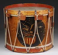 Original field gray painted wooden box with 2 Maxim 08/15 assault drums, also in orig paint each with orig WWI era cloth and metal tabbed belts. One is a brass tab belt the other is a steel tab belt. Horsehair anti-rattle padding still present attached to the lid of the box. Knot hole in the bottom of the box, however knot piece that fills the hole is present. PROVENANCE: Collection of Dr. Geoffrey Sturgess. CONDITION: Exterior of drum box paint has thinned and some of the wood is showing through, there is also a sparse scattering of boring beetle damage visible on the front panel as well as on the top cover. Metal hardware significantly scaled and brown but still strong and serviceable. Hasps and retention hooks also completely serviceable. 1st drum is marked as manufactured by “E&G” with typical “Feuer! / Kurbel hoch” (Fire! – Handle up) markings impressed at rear of drum. Spool moves freely. Belt soft, pliable and serviceable, retaining attractive brass tabs. Drum #2 no visible makers mark, except for some illegible initials under the paint with the same typical markings on the rear of the drum. Cloth belt soft and serviceable, steel tabs rusted and scaled, faint and indiscernible makers mark on leather tab of belt. Exterior of 2nd drum retains about 70% of its green paint with the balance showing as deeply scaled corrosion, typical of these vintage originals. A very nice offering for the WWI Maxim MG 08 enthusiast. 43475-1118 JWK66 (2,500-3,500) – Lot 3798
