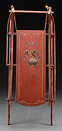 Brass plaque showing Ordnance Corps Emblem. 9-1/4″ dia, cannon bbls are 10-3/4″ l. CONDITION: Very good. Plaque shows generous amounts of black paint finish on the rim and worn black paint on the grenade. 75% red paint on grenade flame. Cannon bbls orig bronze. Very nice item for an artillery collector. 49438-1 TEP (500-1,500) – Lot 3803
