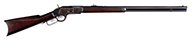 SN 162518. Cal. .44 RF. 20″ bbl, walnut stocks, brass buttplate. CONDITION: Good, no original finish remains on bbl or magazine, bbl address only slightly visible dark bone. Receiver shows old engraving in a scroll style with a vignette of a deer on left side. Stocks have been refinished, action works fine With Cody Firearms Museum research request, confirming features and showing shipment on February 4th, 1884. Colorful old carbine. 49433-7 TEP C&R (3,500-5,000) – Lot 1002