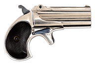 SN 100477. Cal. .41 Colt. 4-3/4″ bbl, nickel finish. Mother of Pearl grips. CONDITION: Very good condition. Revolver retains 50-60% nickel finish overall with the balance blending to smooth clean metal. Front sight has been trimmed. Engraving appears to be original factory or New York style, well executed. Mother of Pearl grips fit well. Nice example of an early engraved Thunderer. 49433-104 TEP C&R (2,000-3,000) – Lot 1044