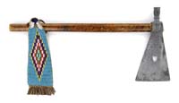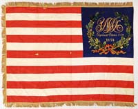 GROUP OF 6 GOOD 18TH & EARLY 19TH CENTURY SCRIMSHAWED POWDER HORNS. All from the same estate. The largest horn, with all-over decoration on a cream honey-colored background with various flower-form decorations, also a prancing horse & inscribed “BERIAN (A?)BBOT 177(3?)”. The 2nd horn, early 19th C, with all-over mariner’s compass and rosette designs in various sizes & shapes, Masonic arches, pinwheel decorations & more; having a carved neck near pour spout, a rounded heavy pine butt plug. The 3rd horn, late 18th–early 19th C, with all-over incised decoration, including full-length figure of lady in dress. Above that is the name “S. SMITH”, various ferns & floral designs, full-length figure of a man, sailing vessels, American flag with an eagle, heart, house, Masonic symbols & more. The horn is fitted with an early fine wooden butt plug. The 4th is a scrimshawed powder horn with milky-white background and dark carved spout, having a pine butt plug and repeating scrimshawed design at the base of the horn of 3 sailing vessels, one a battleship flying an American flag. The 5th is a small early 19th C. horn inscribed “ELLIOTT TOLMAN / THOMASTON (MAINE) / JANUARY 6 1826” with decorations to include Masonic symbols, swords, hex signs & more. The spout is carved with no butt plug and the butt of the horn is shaped in an oval & fitted with a rnd wood plug into which a piece of glass has been set so that one can see the interior of the horn. Lastly, a scrimshawed cow horn with creamy colored base & darkened spout area; decorated with 2 American eagles, one with flag, liberty & outstretched wings, the other with outstretched wings & arrows in its talons, marked “HANSON TOLMAN / THOMASTON 1832” above which is a scene of hills & a pond, and titled beneath it “TOTMANS POND”. SIZE: Largest: approx. 16-1/2” on the curve. 2nd: approx. 16” on the rnd. 3rd: approx. 14-1/2” on the curve. 4th: approx. 14” on the half-rnd. 5th: approx. 9” on the rnd. Last: 9” on the half-rnd. CONDITION: Largest: small cracks at plug opening and missing, otherwise generally good. 2nd: Various separations near the base of the horn that go partially around the circumference of the horn, and damage to surface of the horn in decoration near pouring spout; otherwise generally good. Some staining. 3rd: Generally good condition. 4th: Generally very good to excellent; tiny surface blemish on the edge and a couple of minor staining spots on the side of the horn. 5th: Generally very nice condition. Last: No spout plug; butt plug missing. 4-37227 JDJ17 (1,500-2,500)