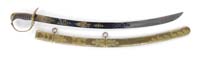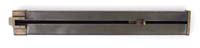 WHEELOCK CARBINE WITH SPANNER. SN NSN. Cal. 62. 28-1/4″ oct bbl rifled with 7 grooves having a right-hand twist. Maker’s marking on left bbl flat in a sunken stamp of a scepter surmounted by initials “GS” beneath 3 cannonballs. On right bbl flat is an additional stamp appearing as part of the roof line of a pagoda-like structure. Front sight is 3/4″ from muzzle & rear sight is 7-1/2″ in front of breech. Lock mechanism is in fine working order & is equipped with pan cover, complete with ornate spanner wrench that not only winds the wheel but also changes flint. Gun is equipped with dbl set trigger contained within the scrolled trigger guard. Stock appears to be made of beech wood & has a very short buttstock, fully stocked to muzzle. Orig wooden ramrod is held uniquely into rammer channel by undercuts that run the entire length of the channel, thus no need for ramrod thimbles. 4-1/2″ x 1″ compartment in butt has sliding wooden cover; however, spanner wrench is too large to fit in butt compartment. Included with this weapon is a period spanner wrench, which has a socket to fit wheel & another to fit jaw screw. Overall length is 8″ and with lever release extends to 12″. CONDITION: Metal is generally fine condition, showing only surface dirt, with no rust or pitting evident. Stock has minimal amount of carving, principally in a series of 4 grooves on either side of breech, as well as on off-lock side with incise-carving parallel to ramrod channel on both sides of forend. Muzzle end has 1/4″ x 1-1/4″ chip out of right side, and several areas of wood replaced at butt end & at cheek rest; all appears to have been done during its period of use and nicely done. Overall stock retains most of its piano-like finish, with a small number of worm holes present in buttstock. 4-35207 PAS62 (3,000-6,000)