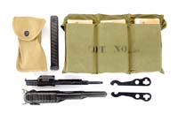 LOT OF THOMPSON “L-DRUMS” & STICK MAGAZINES. Fantastic lot consists of seven L-Drums, eleven 30-rnd stick mags & twelve 20-rnd stick magazines. Three L-Drums are in “MILLS” tan canvas pouches dated 1921. Also included is a tan canvas “MILLS” take-down scabbard with pouch holding 4 of the 20-rnd mags. CONDITION: Drums and magazines are of various type & manufacture and generally in good condition and working order. “MILLS” pouches are fine. Please see the Julia web catalog for images of the drum markings. 33463-2 JZ19 (2,500-4,000)