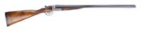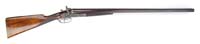 FINE CASED GARNITURE OF PERCUSSION PISTOLS & DOUBLE BARREL SHOTGUN W/ POSSIBLE ALFRED, DUKE OF EDINBURGH & SAXE-COBURG GOTHA CONNECTION. SN NSN. Made by David Koenig of Coburg, Germany. This beautiful garniture is composed of a pair of 40 caliber target pistols with 9″ slightly swamped oct bbls with microgroove rifling, a tiny dovetailed front sights & rare adjustable rear sights in the top tangs. Top flat of bbls is engraved “DAVID KOENIG in COBURG”. They are marked “1” & “2” respectively on bottoms. They are mounted in very nicely figured French walnut 1-pc stocks with delicate checkered horn, Schnabel tipped forestocks with German silver escutcheons for the single wedge. They have back action locks also with maker’s name. Trigger guards are large & fine with hooked finger rests & elaborate pineapple finials with sgl set triggers. Top tangs are tapered & numbered in gold “1” & “2” respectively and extend down back of checkered grips nearly to the ebony buttcaps. Buttcaps have enlarged, inlaid, silver shields with family crest of a crown over “A”. Lockplates, hammers, breech plugs, trigger guards & top tangs are all beautifully engraved in foliate arabesque patterns. The accompanying shotgun, also by David Koenig, is in about 14 bore, has 26-5/8″ twist steel bbls with smooth rib, marked with maker’s name & address and a sgl bead. It has two Damascus guides containing its orig ebony & brass ramrod. Mounted in a beautiful French walnut 1-pc stock with checkered straight wrist and a smooth steel buttplate. It has delicate back action locks engraved to match pistols with vignette of a bird dog & two pheasants in a field scene on left side and three pheasants on right side. Trigger bow is engraved to match with one pheasant. Trigger plate finial is an elaborate pineapple design and all of appended metal on shotgun is engraved to match. Bottom of forestock has an identical metal shield as in the buttcaps of pistols with family crest of a crown over “A”. Accompanied by their orig, green felt lined, walnut veneer over oak casing with a large brass plate in the top with family crest of a crown over “A”. Inside lid is embossed in gold with maker’s logo, name & address. Bottom is compartmented for the disassembled shotgun, the two pistols, an elaborate Damascene gold washed, bag shaped powder flask, a steel nutcracker sgl cavity ball mold for pistols, patch cutters for both pistols & shotgun, wooden handled turn screw & nipple wrench, an ebony handled keg shaped mallet/ramrod with ivory tip which is broken, an ebony handled cleaning rod handle with matching turned ivory knob, a worm and a jag plus an adjusting key for the pistol sights. There are two covered compartments with matching turned ivory knobs. And finally there is the orig black leather sling & 2-pc wood & brass cleaning rod. Accompanied by a hand written letter from David Koenig, undated, giving instructions on loading the pistols. Duke Alfred was born in 1844 & died in 1900 and was the Duke of Edinburgh & Saxe-Coburg Gotha from 1893-1900. On 23 January 1874 he married Her Imperial Highness the Grand Duchess Maria Alexandrovna of Russia, the daughter of Alexander II of Russia and had one son & four daughters who lived although the son died at age 25 leaving no heirs. As with a lot of European royalty the lineage is connected primarily through Queen Victoria who married Prince Albert of Saxe-Coburg Gotha. Regardless of the royal lineage this is a fine set of very well made percussion pistols & shotgun. CONDITION: Pistols are extremely fine, probably unfired with bbls retaining most of their fine, light blue/gray finish. Lockplates, breech plugs & top tangs retain fine, moderately faded case colors, slightly stronger on the #2 pistol. Trigger guards retain about 65% niter blue with balance flaked, not worn, to a light patina. Stocks are fine with checkering showing little or no wear with many small light scratches on left side. Set trigger on pistol #1 needs adjustment, otherwise mechanics are crisp, unable to check bores. Shotgun shows substantially more use with bbls retaining very little orig pattern having been cleaned to bright. Stock shows heavy wear with myriad small nicks & scratches but retains generous amounts of its orig hand rubbed finish with some light surface crackling. There is a small filled area just forward of trigger guard. Mechanics are fine. Case is very fine to extremely fine andsound with light storage & handling scratches and retains most of its orig varnish. Interior is lightly faded with very light soil. Nipple wrench is a little sprung with one ear cracked & aforementioned broken rammer tip, otherwise the implements & accoutrements are extremely fine. 4-33482 JR482 (5,500-7,500)