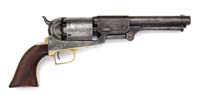 WESTLEY RICHARDS FLINTLOCK GREAT COAT PISTOL. Cal. 60 smooth bore. 7-1/4″ full octagon bbl signed “Westley Richards”. The original flint nicely engraved lock is also signed “Westley Richards”. Bbl shows traces of original finish and the stock is checkered at the wrist. Pistol has an iron swivel mounted ramrod. There are traces of the original blueing on the iron hardware. Westley Richards was located in London at 23 Conduit Street after 1812. PROVENANCE: Dr.Frank Miller Estate Coll. CONDITION: Pistol is in fine original condition throughout with minor bruising to the rear of the ramrod entrance ferrule. 4-35742 RGG35 (2,000-3,500)