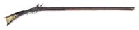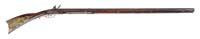 CARVED DUTCH JAEGER TYPE HUNTING RIFLE WITH WOODEN PATCHBOX COVER. Cal. 70 rifled. 25-1/2″ full octagon bbl marked “J. Peter.A.Potsdam”. This original flint rifle has double set triggers and a nice original wooden patchbox cover. Rifle has relief carving forward of the cheekpiece, at the bbl tang and at the rear ramrod entrance ferrule. Nosecap is bone. Brass trigger guard is very ornate, almost in the Schuetzen style. Johannas Peter, Ottingen, Bayern, Potsdam, Denmark, worked circa 1732. CONDITION: Very good considering it’s almost 300 years old, showing only minor bruises and scratches throughout. This gun was obviously well kept and would be a fine example for any collection. 4-35333 RGG45 (2,500-4,500)