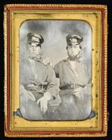 CASED PAIR OF BLISSETT PERCUSSION POCKET PISTOLS. SN NSN. Cal. 54. Fine pair of pistols with 4-1/2″ oct bbls, German silver pin front sights, marked on top flats “LIVERPOOL”. They have back action locks marked “BLISSETT” along top edge. They are mounted in 1-pc walnut stocks with checkered bag shaped grip & iron furniture with a single wedge through German silver escutcheons in forestocks. They have captive rammers with fine tapered trigger guards with engraved pineapple finials. They each have small rectangular silver thumbplates engraved in script “JRG”. Lockplates, hammers, breech plugs, top tangs & trigger guards are all nicely engraved in foliate arabesque patterns. Top tangs have fixed sights. Accompanied by their orig walnut casing with blank brass rectangular plate in the lid. Plate is loose & in a compartment on inside. Inside case is lined in green baize compartmented in bottom for the pistols, a small iron nutcracker ball mold marked “28”, an ebony handled turnscrew with removable blade, a small iron handled gimble and another tiny wood handled gimble with a worm & cleaning brush for a cleaning rod. There is another small tool that appears to be a spring press made of steel with a loop handled screw and a small hook on the end. There is also a lacquered tin of Eley caps. Additionally accompanying is a wonderful, orig commission from King George IV appointing Noble Willoughby Giffney, Assistant Surgeon to the 16th Bradfordshire Regiment of Foot dated 8 December 1825 with two large seals on left edge & a stamp on back of one of seals. Since the first two initials on the thumbplates of pistols are different from the name on the appointment it can be surmised that these pistols were property of a descendent of Mr. Giffney. CONDITION: Fine. Bbls retain about 75% thin orig brown Damascus pattern with lockplates & hammers a smooth even plum brown patina. Trigger guards have traces of orig blue being mostly plum brown patina. One stock has a couple of cracks near left forestock tip, otherwise wood is sound & retains about 80% of their orig varnish showing moderate to heavy wear on grips. One pistol is not solid in safety notch & has a chipped hammer nose, otherwise mechanics are fine. Smooth clean bores. Case is about good with top of lid being loose on its frame & initial plate detached. Front swinging latches are broken & missing. Interior is heavily soiled & worn with some moth damage and loose partitions. Corner compartment covers with their bone pulls are intact. Small implements are fine. 4-35573 (3,000-5,000)