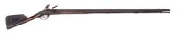 MATCHLOCK EUROPEAN MUSKET. SN NSN. Cal. 78. 41-9/16″ rnd bbl becoming oct 16-1/2″ from breech. Front sight is 1/4″ from muzzle & rear sight is 7-1/4″ from breech. Also on bbl is maker’s touchmark which is not legible. Matchlock mechanism is complete & in good working order; includes pivoting pan cover. Top part of lock maker’s mark partially visible (half circle of dots surmounted what is possibly the letter “R”). Protruding 5″ behind lock is trigger that is unprotected by a trigger guard. Ramrod is retained in the channel by 2 iron stock bands. Wood stock is very robust, formed in a “fish belly” butt behind trigger mechanism & having a high thin butt rail. CONDITION: Overall metal is in fine condition, showing no pitting or obvious use. Stock has 1/2″ x 1-1/4″ chip behind breech on right side & 1/2″ crack on left side of breech. Otherwise, gun only has handling marks & nicks. 4-35335 PAS65 (3,500-6,000)
