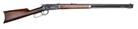 *VERY RARE EXTRA LONG SPECIAL ORDER WINCHESTER MODEL 1892 LEVER ACTION RIFLE. SN 446142. Cal. 44 WCF (44-40). Standard grade rifle with extremely rare 34″ rnd bbl, full magazine with two bands, combination front sight, slot blank in the rear seat and a tang sight with windage. Mounted with uncheckered straight grain American walnut with straight stock and crescent buttplate. Winchesters with extra length bbls are occasionally encountered, however those with 32″ and 34″ bbls are extraordinarily rare and are almost never found with high orig finish. PROVENANCE: Wes Adams Estate Collection. CONDITION: Very fine to extremely fine. Bbl retains 95-96% strong orig blue, thinning over the chamber area; magazine tube retains about 97-98% strong blue with a couple of small thinned areas; receiver retains 96-97% strong orig blue with sharp edge wear and a few light scratches; hammer retains about 75% bright case colors and the lever strong case colors on sides, faded to silver on outer faces; buttplate retains about all of its orig case colors, turned a little dark. Wood is sound with a few light handling & use nicks & scratches with the buttstock retaining 93-95% orig varnish and the forearm about 90% orig varnish. Mechanics are crisp, brilliant shiny bore. 4-44605 JR50 (12,500-17,500)