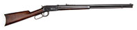 EXTREMELY RARE DELUXE FIRST MODEL WINCHESTER 1894 LEVER ACTION RIFLE. SN 6241. Cal. 38-55. Extremely rare deluxe first model ’94 with 26″ oct bbl, full magazine, ivory bead combination front sight, semi-buckhorn rear sight and Lyman combination tang sight. Receiver is first type with exposed cartridge guide screw heads on the outside. Left side of lower tang, under the wood, is marked with assembly number “2150” and “XXX”. Left side of upper tang is stamped with the tiny initials “J.P.P.”. Matching assembly number is also found in top tang channel of buttstock. Buttplate is a modern reproduction with Turnbull style color case hardening. Mounted with very highly figured, 3-4X American walnut with H-style checkered forearm and capped pistol grip stock with crescent buttplate. Accompanied by a Cody Firearms Museum letter identifying this rifle, as found, with checkered pistol grip stock, received in warehouse Sept. 7, 1895 and shipped Sept. 26, 1895 to Order #21702, repaired & returned Feb. 3, 1908. Also accompanied by a copy of a photograph of hanging game and a lady standing by an Indian. She is holding a Winchester Model 94 rifle, possibly this same rifle. PROVENANCE: Wes Adams Estate Collection. CONDITION: Very fine to extremely fine. Bbl & magazine tube retain 98-99% crisp orig blue with one small spot of pitting near the front sight; forend cap retains 96-97% orig blue; receiver retains 95-96% crisp orig blue with one small spot of flaking on right side by the cartridge guide screw hole and some faint sharp edge wear and very minor candy striping; lever & hammer retain strong case colors on the sides, faded on outer faces of lever. Wood is sound with very light nicks & scratches with the buttstock retaining about all of a professionally restored finish and the forearm retaining about 95% strong orig piano varnish finish. Mechanics are crisp, strong bright bore, rough in the grooves. 4-44402 JR17 (20,000-40,000)