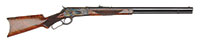 RARE, SPECIAL ORDER DELUXE WINCHESTER MODEL 1886 LEVER ACTION RIFLE. SN 9425. Cal. 38-56. Deluxe ’86 with scarce 24″ oct bbl, button magazine, half nickel front sight and flat top rear sight. Left side of lower tang, under the wood, is marked with assembly number “957” and “XX”. Mounted with very highly figured shell grain American walnut with H-style checkered forearm and serpentine grip buttstock that has black triangle inlay and crescent buttplate. Left side of lower tang, under the wood, is marked with the assembly number “957” and “XX”. Matching assembly number is also found in the top tang channel of the buttstock along with a “P”. Matching assembly number is also found inside the toe of the buttplate. Accompanied by a Cody Firearms Museum letter which identifies this rifle, as found, received in warehouse Oct. 8, 1887 and shipped Oct. 11, 1887 to Order #23809. The bbl length is not mentioned in this letter but all appearances show that it is orig to this rifle. PROVENANCE: Wes Adams Estate Collection. CONDITION: Very fine to extremely fine. Bbl retains 97-98% strong orig blue with only light sharp edge wear; receiver retains most of its orig bright case colors, slightly faded on sides & top, turning silver on bottom; lever & hammer retain strong case colors on sides, moderately faded & turned dark on outer faces; buttplate retains most of its strong orig case colors, lightly to moderately faded. Wood is sound with a few light nicks & scratches and retains most of its orig piano varnish finish. Mechanics are crisp, brilliant shiny bore. This rifle has seen very little use, if any. The bolt face & loading gate show no evidence of having been used. 4-44482 JR27 (15,000-25,000)