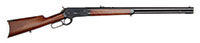 VERY RARE SPECIAL ORDER WINCHESTER MODEL 1886 DELUXE “BIG 50” LEVER ACTION RIFLE. SN 78640. Cal. 50 Ex. (50-110). Beautiful & rare deluxe ’86 with 26″ extra heavy, matted, oct bbl, ivory bead combination front sight, no provision for a rear seat and a locking Lyman combination tang sight. Mounted with extremely beautiful, center crotch, flame grain American walnut with “H” style checkered forearm and pistol grip stock with serpentine grip cap that has a black triangle inlay and Winchester hard rubber buttplate. Left side of lower tang is stamped with assembly number “7138” and “XXX”. Matching assembly number is found in top tang channel of buttstock. Accompanied by a Cody Firearms Museum letter identifying this rifle in caliber 50-110 with extra heavy matted oct bbl, plain trigger, checkered stock with pistol grip, Lyman sights, shotgun butt and no rear seat, received in warehouse April 11, 1893 and shipped same day to Order #16094. This rifle is rare & special in many ways, for its caliber, bbl configuration and the fact that it is color case hardened. By the time the 50 caliber cartridge was available in the 1886 models, the standard was blue frame therefore color case hardened frames were special order. PROVENANCE: Wes Adams Estate Collection. CONDITION: Very fine to extremely fine, all matching. Bbl retains 95-96% strong orig factory blue with only sharp edge wear and a couple of small scratches; magazine tube retains about 98% orig blue; receiver retains about all of its orig case colors, strong & bright on left side, somewhat faded on right side and over the top; bottom of receiver is also faded but still shows the 2nd shellac line on edges of bottom; hammer retains strong bright colors on sides and rear edge with top edge dark; lever retains bright colors on sides turned silver on outer faces; forend cap retains smoky case colors; there are some chips around top tang with some apparent minor shrinkage, otherwise wood is sound with a few, very minor nicks & scratches and retains about all of a very professional restored finish. Mechanics are fine, bright shiny bore. 4-44460 (50,000-80,000)