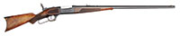 *VERY RARE WINCHESTER MODEL 1886 DELUXE EXTRA LIGHT LEVER ACTION RIFLE. SN 126469. Cal. 45-70. Very rare special order rifle with 22″ full matted nickel steel rnd bbl, 5-shot magazine with pedestal mounted Lyman ivory bead Jack front sight, no provision for a rear sight seat and a Lyman #21 receiver sight. Left side of lower tang, under the wood, is marked with assembly number “432”, “R” and “XXX”. Matching assembly number is found in top tang channel of buttstock. Mounted with very highly figured, center crotch, flame grain American walnut with H-style checkered forearm and capped pistol grip stock that has a very rare cheekpiece and Winchester hard rubber buttplate. This rifle, identified by SN, appears on p. 307 of The Winchester Book, Madis. Accompanied by a Cody Firearms Museum letter which identifies this rifle, as found, with oil finished wood and extra light, received in warehouse Sept. 30, 1902 and shipped same day to Order #156659. Also accompanied by a copy of the Winchester shipping record for this rifle. Also accompanied by an NRA silver medal “TEN BEST WEAPONS AWARD 1986” number “257”. Along with the medal is an NRA certificate of Recognition identifying this rifle by SN with the owner listed as J.E. Habol at the 115th Annual Meeting on April 27, 1986 in New Orleans. PROVENANCE: Wes Adams Estate Collection; J.E. Habol. CONDITION: Very fine. Bbl & magazine tube retain 95-96% strong orig blue with slight muzzle edge wear and some minor thinning; forend cap retains about 95% orig blue; receiver retains 95-96% strong orig blue with sharp edge wear, a few scattered freckles of pin prick rust and some minor candy striping; lever & hammer retain strong bright case colors on the sides, moderately faded on outer faces of lever. Wood is sound with light handling & storage marks and retains most of a very fine, professionally restored oil finish. Mechanics are crisp, brilliant shiny bore. 4-44464 JR26 (15,000-25,000)
