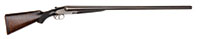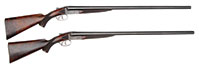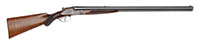 SCARCE WINCHESTER MODEL 1887 LEVER ACTION SHOTGUN. SN 31187. Cal. 10 ga. Standard grade shotgun with 32″ steel bbl, half magazine with color case hardened receiver that has the “WRACo” intertwined initials on left side. Mounted with very highly figured slab-sawed, uncheckered American walnut with forearm panels and a rnd knob pistol grip stock with checkered steel Winchester buttplate. According to Flayderman’s Guide to Antique American Firearms approx. 64,855 of these shotguns were produced in the period 1887-1901 in both blue & color case hardened with 30″, 32″ & rare 20″ bbls. They were strong reliable shotguns, but unfortunately faced stiff competition from the more successful Models 1893 & 1897 pump action shotguns. The models 1887 & 1901 shotguns were the only 10 ga. shotguns produced by Winchester. The Model 1887 saw modest success with coach guards & law enforcement in the late 1800s and their popularity was refreshed by Arnold Schwarzenegger in one of his late 20th century movies. PROVENANCE: Wes Adams Estate Collection. CONDITION: Extremely fine. Bbl retains about 95% crisp orig blue with some fine pitting on the top at about mid-point and corresponding pitting on magazine tube, which retains about 75% strong orig blue with a series of fingerprints and light pitting, probably from blood; receiver, lever & hammer retain most of their strong, bright, orig case colors with one small cleaned area on top rear edges and fading on outer faces of lever. Wood is sound and retains about all of its orig factory finish. Mechanics are crisp, moderately to heavily pitted bore. 4-44542 JR60 (4,500-6,500)