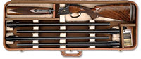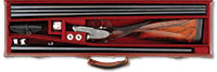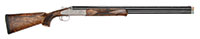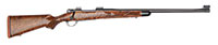 *EXTREMELY RARE DELUXE ENGRAVED & GOLD INLAID TAKEDOWN WINCHESTER MODEL 1894 LEVER ACTION RIFLE. SN 363933. Cal. 32 Spcl. Wonderful Model ’94 with 26″ oct to rnd bbl, half magazine, full matted top with King 3-bead front sight, a Lyman 6A rear sight and a locking Lyman combination tang sight. Mounted with very highly figured, center crotch, flame grain American walnut with “H” style checkered forearm and capped pistol grip stock with sweeping, deep fluted cheekpiece and nickeled brass Swiss buttplate. Bottom of stock & forend cap have sling eyes. Left side of lower tang, under the wood, is stamped with the assembly number “3964” and “SCPO”. Sides of the top & bottom tangs are also stamped with tiny number “61”. The matching assembly number is found on the buttstock under the buttplate and inside toe of buttplate. Receiver is spectacularly engraved by John Ulrich in Style 4 which consists of the very large vignette of a hunter shooting from behind a tree with two shot bull elk in the foreground, all set in a forest scene. The front & rear of this vignette is engraved with elaborate foliate arabesque patterns with fine stippled background. Right side is engraved behind the loading gate opening with the large vignette of a grizzly bear on a promontory in a mountain scene with matching foliate arabesque patterns fore & aft. Both sides have wavelet borders. Bottom & top edges of receiver are engraved in snake & dot patterns with light engraving on the bolt, floorplate, takedown ring, top tang & buttplate tang. Sides of lever & sides of hammer, along with the outer face of lever, are engraved to match. Rear edge of receiver, front edge of takedown ring, bbl at the receiver & forend cap are inlaid with flush gold wires. An identical John Ulrich engraved Model ’94, SN 308993, is pictured on p. 172 of the book Winchester Engraving, Wilson. PROVENANCE: Wes Adams Estate Collection. CONDITION: Very fine, all matching. Bbl & magazine tube retain 95-96% strong orig blue with the magazine tube cap flaked to a light patina; forend cap retains about 65-70% orig blue; receiver retains about 88-90% orig blue, worn thin over the bottom at the carry point; takedown ring retains 90-92% orig blue, slightly thinned on bottom, glossy & bright elsewhere; lever & hammer retain most of their bright orig case colors, thinning to silver on outer faces of lever; stock has a small chip back of top tang, otherwise wood is sound with light nicks & scratches and retains just about all of its orig piano varnish finish. Mechanics are crisp, bright shiny bore. 4-44350 JR (30,000-50,000)