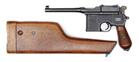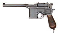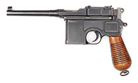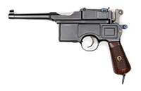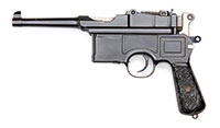 *MAUSER C96 PRE-WAR COMMERCIAL, AUSTRIAN CONTRACT, WITH MATCHING STOCK. SN 196350. Cal. 7.63mm. Exceptionally nice Pre-War Commercial accepted by the WWI Austrian military. Gun has standard Pre-War Commercial features as typical of this era with a 5-1/2″ bbl, short extractor, slip-in 50-1000 rear sight and small ring hammer. Usual chamber markings with full SN on left chamber flat. Crown “U” on left side of bbl extension. Austrian acceptance, “Wn15”, was applied on right chamber flat. Matching numbers on the bolt stop, top of bolt, back of hammer, subframe and frame. Detail disassembly shows all numbered parts matching. Original grips are correctly matched. Accompanied by excellent original condition and factory matching shoulder stock that has no Austrian acceptance markings. One of the nicest Austrian contract pistols recently offered and especially desirable when available with its matching shoulder stock. PROVENANCE: Ralph Merrill Collection CONDITION: Pistol retains crisp 98% rust blue with minimal wear under bbl and forward projection of the mag well wear it would contact the stock when holstered. Small marrs on each side of mag well. Front grip strap has only a few minor freckles. Minor wear on backstrap where contacted by the lug. Small parts retain at least 95% of their original fire blue. Stock is near excellent with most of its original varnish. Very small crack on back just below hinge. About 50% of hinge surface shows wear and light surface rust. Lug retains much of its original fire blue though drifting to brown. Bright, near mirror bore with strong rifling. (C&R). 4-47246 LMA77 (2,500-4,000)
