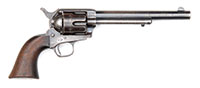 EXCEPTIONAL WINCHESTER MODEL 1873 LEVER ACTION RIFLE. SN 205275. Cal. 44 WCF (44-40). Standard grade 3rd Model rifle with 24-1/4″ medium weight rnd bbl, button magazine, blued Rocky Mountain front sight and semi-buckhorn rear sight. Mounted with very nicely figured straight grain American walnut with straight stock & crescent buttplate with trap containing an orig 4-pc brass & iron cleaning rod. PROVENANCE: Wes Adams Estate Collection. CONDITION: Exceptionally fine, as new. Bbl retains about 98% strong orig factory blue with only faint muzzle edge wear and a couple of tiny pin pricks of light surface rust and a couple of minor dings; receiver, lever, hammer, forend cap & buttplate retain virtually all of their orig factory case colors, brilliant on sides and most of receiver, lightly faded over top of receiver ring and bottom of receiver at carry point; top tang is also lightly faded as are the outer faces of lever; forend cap is also lightly to moderately faded; buttplate retains brilliant case colors showing wear on heel & toe; wood is sound with a few scattered, very light handling & storage nicks & scratches with a couple of small gouges on forearm and overall retains about all of its brilliant orig factory finish; dust cover retains virtually all of its orig bright blue. Mechanics are crisp, brilliant shiny bore, probably unfired; bolt face retains virtually all of its orig blue. This is a truly exceptional ’73. 4-44587 (17,500-27,500)