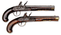 *PRE-WAR COMMERCIAL MAUSER C96 & MODEL 1914 POCKET PISTOL CASED SET. SN 97801 & 348422. Elegantly cased set includes Pre-War Commerical C96, M1914 Commercial pocket pistol with spare mag, custom flat board stock that attaches to C96, reproduction cleaning rod and keys. Cal. 7.63mm Pre-War Commercial has standard 5-1/2″ bbl, short extractor, slip-in 50-1000 rear sight, two lug firing pin and small ring hammer. Usual chamber marking with full SN on left chamber flat. Crown “U” on left side bbl extension, Mauser address on right frame, visible matching numbers on bolt stop, bolt, hammer, subframe and frame. Grips are each numbered “130”. Lanyard ring is replacement. Cal. 7.65mm M1914 pistol has standard Mauser address on left side of slide over the Mauser banner on sideplate. Full SN is on left side of slide and repeated on bbl and back of frame. “Mauser-7,65” is on right side of slide and “Germany” is on right side of frame over grip. Complete with two magazines whose body is in the white and marked with the Mauser banner on the right side. Square toe, rust blued floorplate on each mag. Cleaning rod is a reproduction. Case lid is compartmentalized for a custom flatboard shoulder stock having a salt blued lug numbered “9” and a cleaning brush. Black leather covered case measures 9-1/2″ x 17″ with two locking latches and metal reinforced corners. Plaque on lid is marked “GOTT.MIT.UNS”. Case is lined with green felt. Inside case is a round brass plaque with “KMG”. PROVENANCE: Ralph Merrill Collection CONDITION: Pre-War Commerical C96 is 80-85% original blue with fading under bbl, entire area in front of mag well and front/back straps. All faded areas have been touched up with cold blue. Most original straw remains on trigger. Small parts with 80-90% original fire blue. Very good to excellent grips in keeping with the overall appearance of pistol with mismatch as previously noted. Mirror bore. M1914 pocket pistol has 97% original blue with high point wear and small scattered scuffs. More wear on original fire blued extractor, bbl retainer, trigger and grip screws. Original walnut grips in very good condition with original varnish. Reproduction cleaning rod is as new. New condition also applies to custom flatboard shoulder stock. Excellent case presents very nicely, with just a few handling marks and minor scuffs, mostly on bottom. 4-47242, 4-47306 LMA (1,750-3,500)