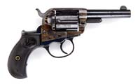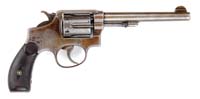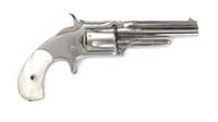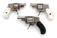 *LOT OF THREE BABY HAMMERLESS DA REVOLVERS. 1) New Model. Cal. 22 short. SN 874. Nickel finish, 1-5/16” ovoid shaped bbl, half moon front sight and birdhead pearl grips with large head cyl pin. CONDITION: Very good. Mechanics are fine, strong bore, scattered pitting. Grips are fine. 2) Rare Large Frame. Cal. 22 long rifle. SN 452. Rare 8-shot cyl with 1-3/4” ovoid shaped bbl, nickel finish, half moon front sight and hard rubber birdhead grips. CONDITION: Very fine. Good mechanics, strong bright bore, grips are fine. 3) Ejector Model. Cal. 22 long. SN 145. Nickel finish, 1-1/4” ovoid shaped bbl, half moon front sight with square butt pearl grips. CONDITION: Very fine. Mechanics are fine, strong bore with light pitting. Grips are fine. 4-30612 JL18 (300-500)