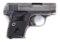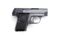 *DUO SEMI AUTOMATIC PISTOL WITH SS INSCRIPTION. SN 67116. Cal 6.35mm. 2-1/8” rnd bbl. Dated “43” on left side of slide, which has standard markings with along Czech proofmark. The upper left side of the slide has spurious SS runes followed by “Sturmbann Führer / Anton Ameiser” also spurious. Black plastic grips with DUO on both sides. CONDITION: Very fine with 95% blue with light wear on sharp edges. The grips are fine. The magazine is gray with even pitting. 4-31124 JJ101 (300-500)