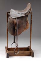 S. C. ROBINSON CONFEDERATE SHARPS. SN 2468. Cal. 52. This fabulous, historic carbine, identified by inscription on the stock to a member of “Stuart’s Cavalry”. Also written on the side of the stock “MOBILE, ALABAMA”. Stuart’s Cavalry was one of the hardest fighting calvary units in the Civil War and Lee had come to rely so much on Stuart’s elite and fleet ability that his absence during the onset of the Battle of Gettysburg was a tremendous loss to Lee and in his mind, in part, resulted in the defeat at this monumental battle for the South. This is a nice, orig and complete example of the earliest made Confederate Sharps carbines. SN appears externally on lock and frame. Lock is marked “SC Robinson / Arms Manufactory / Richmond Va / 1862” and bbl is marked behind rear sight “Richmond Va / 1862”. Initials “LSK” are nicely carved in buttstock. A search of Confederate records reveals an L.S.King who enlisted 7/31/1862 as a Private in Co G Va 4th Cavalry of Jeb Stuart’s division. Mr. Michel, in his notes, offers the following information: “Manufacture of the Sharps pattern carbine by the S. C. Robinson Arms Manufactory from Dec. 1862 to March 1, 1863, when the carbine factory was taken over by the Confederate government. during this short period, close to 2,000 carbines were produced. While these carbines generally follow the outline of the actual Sharps, the difference is immediately noticeable as the lockplate is not drilled for the Lawrence primer feeder and the hammer is more narrow and not imbedded into the outer projection of the receiver. The lockplate is marked ‘S.C. Robinson / Arms Manufactory / Richmond Va / 1862’. The top surface of the barrel is stamped ‘S. C. Robinson / Arms Manufactory’, and behind the rear sight is stamped ‘Richmond Va / 1862’. The serial number appears at the tail of the lockplate. This is the highest serial number known for a Robinson-marked carbine”. You are bidding on a popular Confederate carbine that generally saw a lot of use, and though this gun was used in battle, it is generally well preserved and complete. CONDITION: Bbl is brown/gray with scattered pitting. Other metal surfaces are also brown/gray with scattered pitting. Rifling in bore is deep and distinct, though pitted. Brass band has been cleaned. Brass buttplate is smooth and exhibits nice patina. Buttstock exhibits some orig varnish with numerous small nicks, dings, and scratches. Forestock has 3″ hairline crack which does not affect aesthetics. 4-31342 JS132 (20,000-40,000)