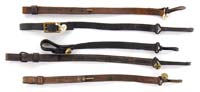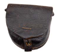 WWII LEATHER LUGER HOLSTER W/MAGAZINE. SN NSN. 1942 dated brown leather holster marked “DTA” over “42” w/Nazi Waffenampt WaA195. Also marked “P.08”. Magazine has a blued aluminum body with an aluminum base. Base marked “6890” with an “N” over a cross, over a Waffenampt 63 CONDITION: Very good. Leather is lightly scuffed with one replacement loop on back. Missing internal strap and some stitching on cover. Magazine fine. Retains approx 70% blued finish with some light dings and scratches. 4-59630 CSW15 (100-150)