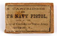 RICHMOND RIFLE. SN NSN. Cal. 58. Mr. Michel describes this 1864 rifle as follows: “In 1864 Richmond began production of a very limited number of ‘short rifles.’ This example is typical with a 33″ bbl. Forestock is held by 2 bands, with the forward band being the same as a middle band with sling swivel of a 3-band rifled musket. Front sight is different from the sight of the 3-band rifled musket. It has a larger base with a pinched sight form. It is the same as appears on the Richmond carbine. Nosecap is of brass on the stock extension forward of the front band. Buttplate is also of brass. Lockplate is marked forward of the hammer ‘CS / Richmond Va’ and at the tail is dated ‘1864’.” The scarcest configuration of Richmond Armory products is the 33″ Richmond Rifle. Production didn’t start until 1864; however, Richmond rifles are found with a variety of lock dates, locks and parts. Battlefield gleanings and captured damaged guns resulted in a variety of 33″ Richmond rifles. Scarcest of the 33″ rifles have mostly Richmond manufactured parts and will be dated 1864, as is this gun. CONDITION: Bbl is brown/black with pitting. Rifling is discernible, though pitted. Bbl retains orig front and rear sights, though leaves of rear sight are restored. Bands, trigger guard, and sling swivels are brown. Ramrod appears orig to this gun; however, it appears converted from an earlier musket. Stock is sound with areas of orig varnish. Stock exhibits a hairline crack back of lock along with scratches and nicks. Initials “BCL” are carved into flat of left buttstock. These initials probably denoted the Confederate who carried this gun. 4-31247 JS161 (12,000-16,000)