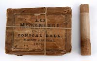 COLUMBUS ARMORY RIFLE. SN 73. Cal. 58. Several Confederate rifles made by various makers in Columbus, GA and the surrounding area have similar features. Among these makers are J. P. Murray, Columbus Armory, Dickson, Nelson, and David & Bozeman. All these manufacturers shared similarly designed carbines and MS-style rifles. All these makers normally marked their guns, with exception of the Columbus Armory, where only 2 or 3 marked specimens are known. Based on this information, we believe this unmarked gun to be a product of the Columbus Armory. Earlier literature usually identifies these guns as J. P. Murray. Bbl of this gun is inspected “PRO. / F.C.H.” which is seen on known J. P. Murray and Columbus Armory weapons. Information on the Columbus Armory only recently has come to light in the marvelous book by John Murphy and Howard Madaus, Confederate Carbines and Musketoons. Murphy and Madaus, in their book, describe the Confederate contract to Columbus Armory for 200 guns in 1862, to be inspected by Capt. F. C. Humphries, who inspected this gun. John D. Gray, the owner of the Columbus Armory, was paid for 183 guns. This gun, SN 73, certainly falls in that range. Mr. Michel, in his notes, describes the markings and restoration of this gun as follows: “The lockplate is unmarked, but the barrel in characteristically marked ‘PRO. / F.C.H’. The sideplate is marked ‘VI’ and the barrel underside marked ’73’, while the inside of the lockplate is marked both ‘VI’ and ’73’. The fore-end has been added from underneath the rear band to the front band and nose cap. On the barrel is an original and correct Boyle & Gamble brass saber bayonet adapter”. CONDITION: Bbl is brown/black with scattered pitting. Bbl proofs are clear and well stamped. There is a partially discernible “224” stamped about 3″ from muzzle end on top of bbl. The attached Boyle & Gamble bayonet adapter is serial numbered “46” and has a rich, “excavated”-type patina. Brass buttplate and trigger guard are well patinaed over scattered nicks and scratches. Front bbl band and possibly rear bbl band, are replacements, as is forestock forward of rear band, ramrod, and rear sight. 4-31299 JS121 (8,000-12,000)
