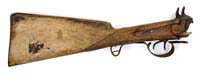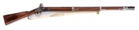 READ & WATSON TYPE 1 RIFLE. SN 186. Cal. 64. This scarce gun is being offered in near “attic” condition. Accompanied by orig Hall bayonet which fits gun snugly. Surfaces are mostly untouched, with exception of apparent contemporary repair to wrist. SN is stamped below nipple, on breech. Also serial number on bottom of buttstock “C186”. Mr. Michel, in his notes, tells the history of this specimen as follows: “Long assumed to have been made from parts captured at Harpers Ferry that were thereafter assembled by J. B. Barret in Wytheville, Virginia, it is now clear that these rifles were actually assembled by N. T. Read and John J. Watson of Danville from carbines and rifles the state had received prior to the outbreak of the war under the Militia Act. In the process of altering the rifles, the original Hall breech block and frame were replaced by a brass breech piece with a centrally positioned iron breech plug for the barrel into which a nipple was screwed. The new breech piece is a small, narrow insert, only the rear tang of which extends part way back along the top of the wrist of the stock. Original Hall parts are used as the barrels, barrel bands, buttplates, triggers, and trigger guards. The buttstock is of new manufacture. The forestock is original, joined with a staple. Serial numbers appear on the underside of the buttstock and on the breech below the nipple”. CONDITION: Bbl and other iron parts are gray/brown with scattered staining and pitting. Old varnish on bbl is discolored. Stock exhibits numerous scratches, nicks, and dings, along with an old repair to wrist, visible on back side of gun. Brass breech is smooth with good patina over scattered nicks. 4-31305 JS119 (12,000-15,000)
