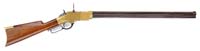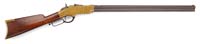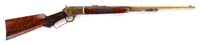 FIRST MODEL MORSE CARBINE. SN 44. Cal. 50. This gun appears orig in every regard and is the most popular of the Morse models, having a solid brass latch. Mr. Michel, in his notes, describes this gun as follows: “Production of inventor George W. Morse’s patent carbines at the State Military Works in Greenville, South Carolina, resulted in the delivery of about 1,000 such carbines. This example of what is considered to be the first model (prototype models excepted) is serial number 44. It is distinguished by the latching mechanism which depends on an iron rod in the operating lever to both lock the action and, when driven forward by the hammer, to cause a movable firing pin to strike the primer on the base of the metallic cartridge”. CONDITION: Bbl is gray/brown, cleaned showing scratching and pitting. Brass frame, nose cap, and buttplate show numerous scratches and dings. There are some porous areas due to casting. Buttstock shows traces of orig varnish. Forestock exhibits most of hits varnish. There is a 1″ x 1-1/2″ repair to forestock adjacent to nose cap. Buttstock has several chips at frame. There is a gap between part of frame and buttstock. Cryptic letter stamped on buttstock at trigger guard is present but not discernible. Buttplate is missing jag. 4-31338 JS114 (20,000-25,000)