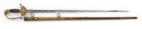 COOK & BROTHER MUSKETOON. SN 2419. This 24″ bbl musketoon is often known as an artillery carbine. Lock is marked “Cook & Brother / Athens Ga / 1863” and SN “2419”. There is a Confederate First National Flag stamped rear of hammer on lockplate. Bbl is marked “Cook & Brother / Athens Ga / 1863” and SN “2511”, as is rear band and nose cap. Front band is SN “2509”. Since the SNs are mixed but all within 100 numbers or so, the gun was probably used in this configuration. Buttplate is stamped “CS”. “CS” surcharges on these guns are not normally encountered; however, this marking appears quite old and though it could have been done at any time, or even by a GAR post showing that their captured gun was Confederate, this mark adds to the aesthetics of the gun. Rear sling swivel is missing and has a screw placed contemporarily in its hole. Mr. Michel, in his notes, describes this gun as follows: “This musketoon, of the slimmer form in stock pattern probably represents a transition from New Orleans production to that of Athens, Ga. Although the lockplate is well marked as Athens production and dated 1863, it is serially numbered at 2419, about 100 numbers from the serial number which appears on the barrel, 2511. The brass front sight on the barrel is more characteristic of New Orleans production than Athens, as is the trigger guard, where the sling swivel is attached to a screw base rather than a lug on the trigger guard plate”. CONDITION: Bbl and lock are gray/brown with scattered staining, nicks, dings, and pitting, especially at breech. Brass rear sight, bands, nose cap, buttplate, and trigger guard are cleaned. Stock has several breaks and repairs, including piece of wood missing at toe. Repair at wrist, several repairs around lock. Ramrod is replaced and is pitted around tip. Both front and rear sights appear orig. Rifling in bore is sharp but pitted. Tang screw appears replaced. 4-31291 JS128 (12,000-18,000)