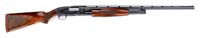 *WINCHESTER M1897 WWII RIOT GUN. SN E931756. 12 ga. 20″ bbl. This shotgun falls into very late WWII M1897 riot gun SN range. It is not fitted with a handguard/bayonet adapter nor was the bbl ever milled with 3 grooves to put on an adapter. This takedown shotgun has matching SNs on both the receiver and bbl. It has the proper “WP” circled Winchester proof marks on top of the receiver as well as on top of the bbl. There is a flaming bomb just above the “WP” proof mark on the bbl and the left side of the receiver is stamped “US” with a flaming bomb. This is proper for a late SN riot gun. Bbl is marked “M97 WINCHESTER TRADEMARK 12 GA. 2-3/3″ CHAM CYL”. The stock is inspector marked “WB” OVER the ordnance wheel. Buttplate is the black plastic checkered Winchester Repeating Arms Company logo version. Buttplate screws appear to be replacements. CONDITION: Extremely fine. Shotgun retains approx 95% orig blue with some light scattered scratches, some deeper than others, especially on the right side of the frame. Buttstock retains the orig varnish with scattered light to moderate dings, scratches & dents. Brilliant, bright shiny bore. Crisp mechanics. 4-59936 CSW31 (2,000-3,000)